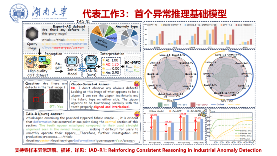研究内容:超越简单的“是/否”判断,研究基于多模态大模型后训练的异常理解技术。旨在让系统不仅能够检测到缺陷,更能像人类专家一样,理解、描述异常的外观形态,并推理其可能的成因,为后续的修复决策提供依据。